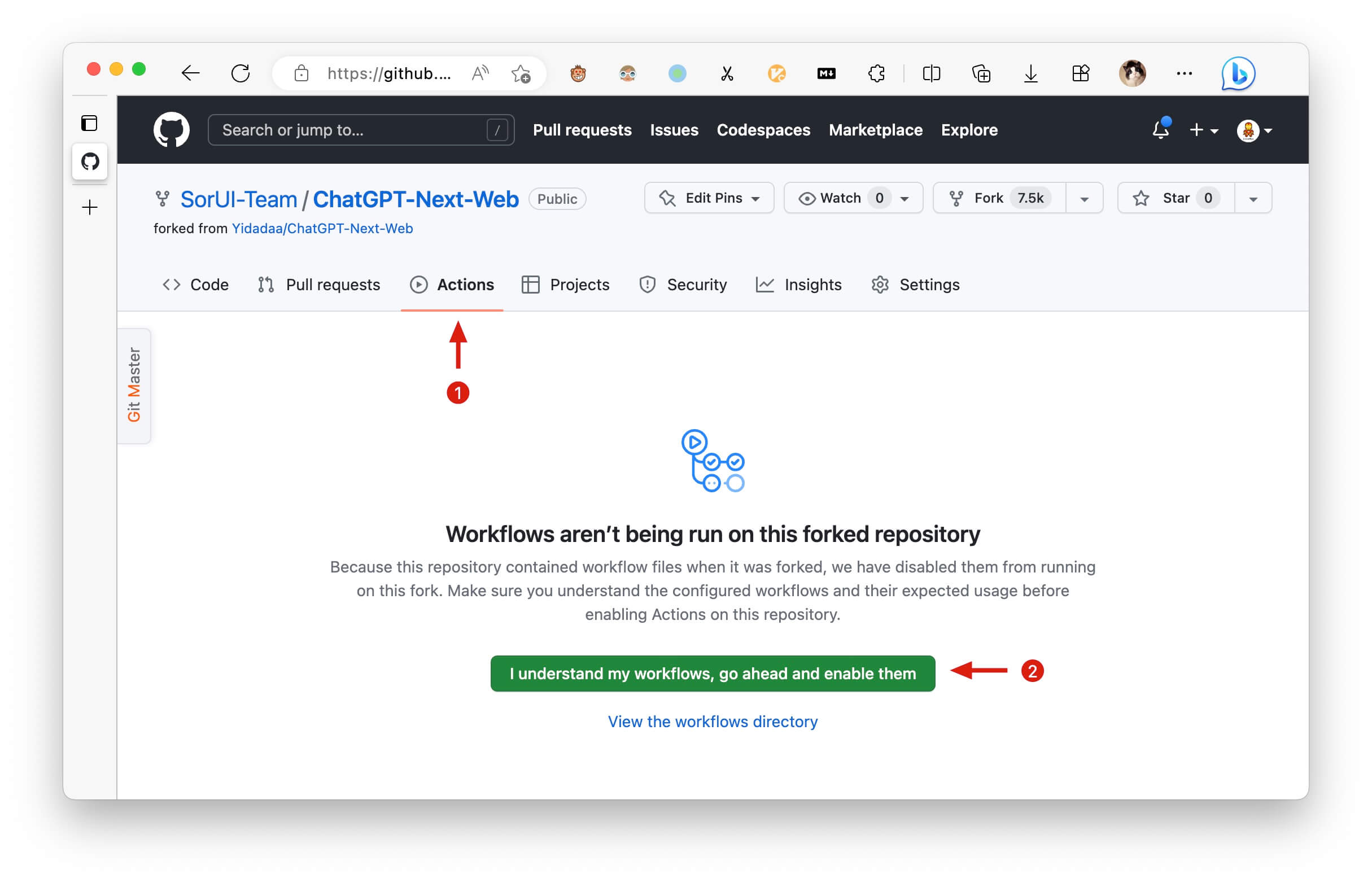 After forking the project, due to the limitations imposed by GitHub, you need to manually enable Workflows and Upstream Sync Action on the Actions page of the forked project. Once enabled, automatic updates will be scheduled every hour: