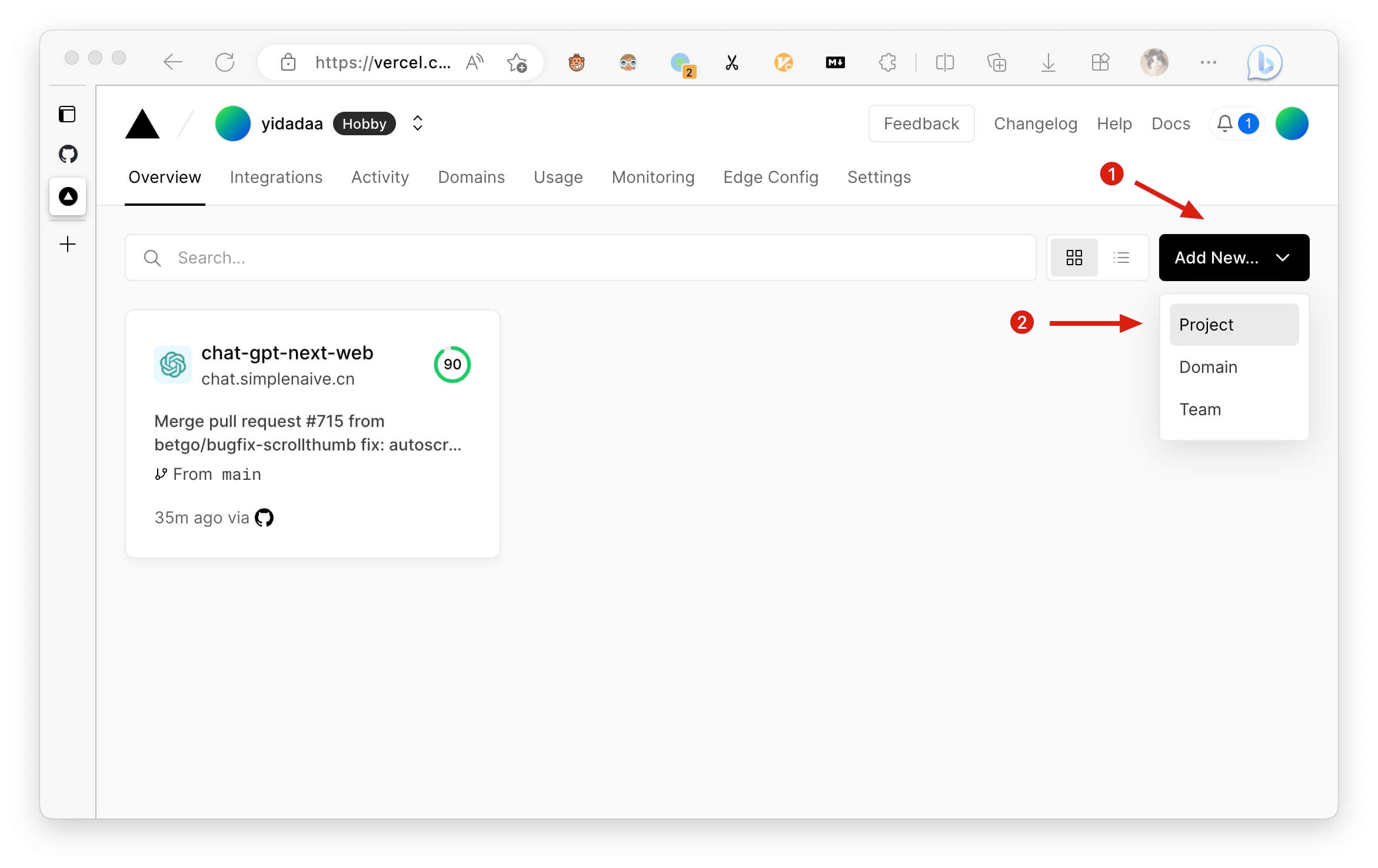 1. 进入 Vercel 控制台首页;